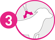 Die vordosierte Pipette aus der Verpackung nehmen und die Spitze der Pipette mit einer Schere ab­schneiden. Das Fell des Hundes an zwei Stellen im Nacken scheiteln und die Pipette zunächst an der ersten, dann an der zweiten Stelle direkt auf der Haut je zur Hälfte entleeren.