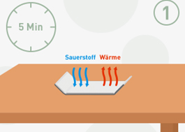 - Befolge die Anweisungen und kontrolliere alle 15 Minuten, ob die Temperatur noch angenehm ist und keine Schmerzen durch Reizung oder Hitze auftreten;