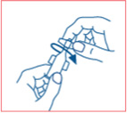 Einzeldosis vorsichtig durch Drehen und Abziehen der Kappe öffnen, wobei der Kontakt mit der Öffnung der Einzeldosis zu vermeiden ist.